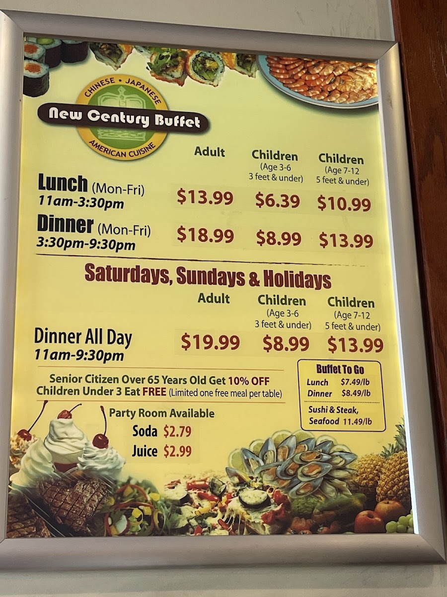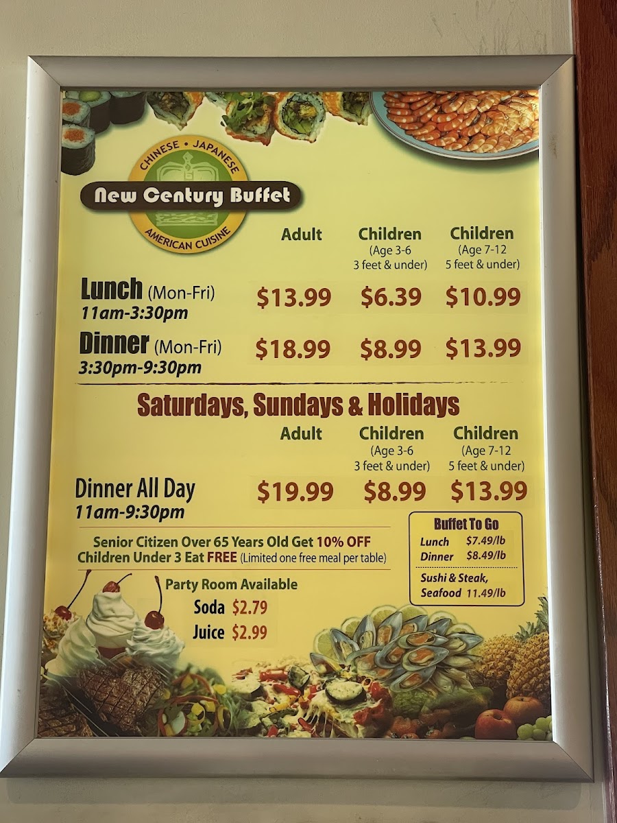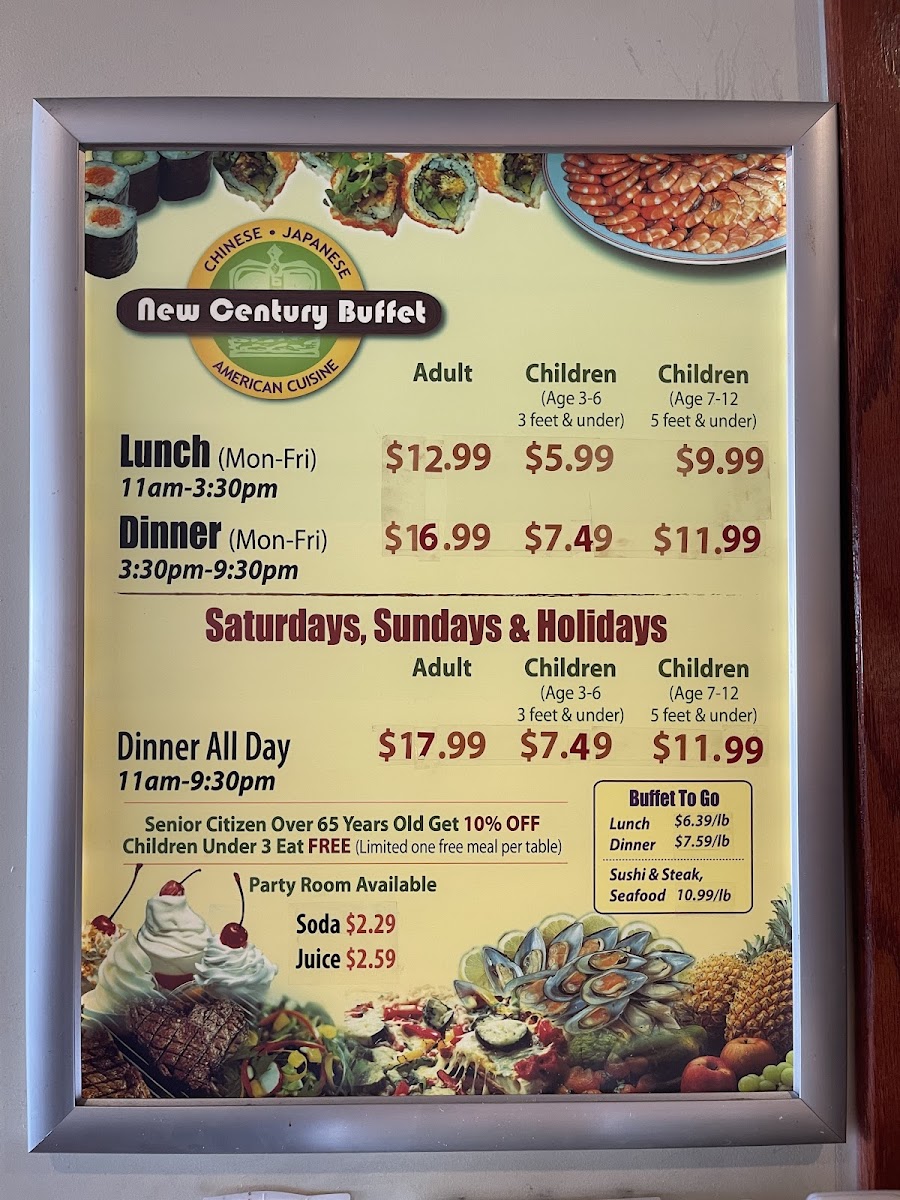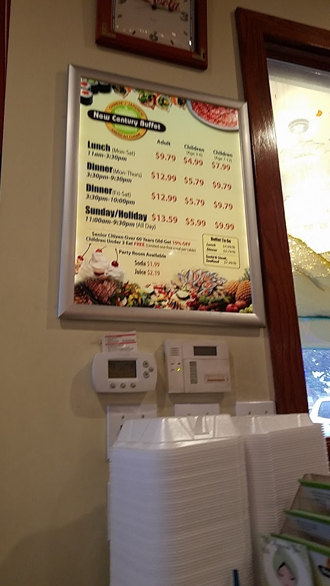 New Century Buffet Menu